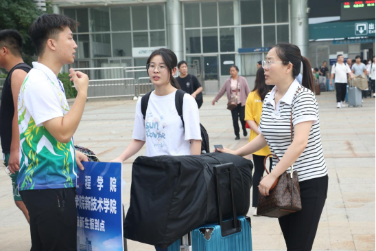 身着蓝色短袖的志愿者、热情洋溢的老师、耐心细致的工作人员,他们忙碌在火车站、学校与宿舍之间。让新入学的“小萌新们”深深感受到了家的温暖。