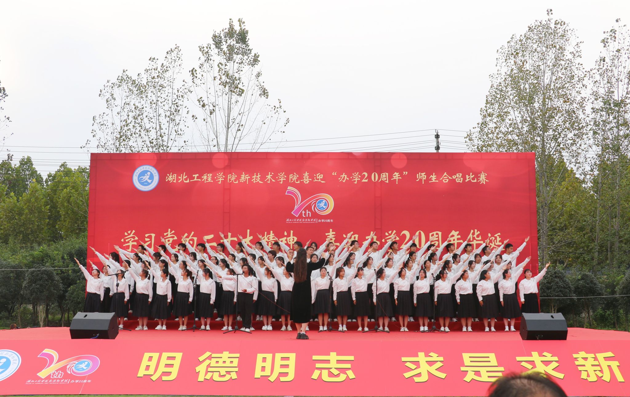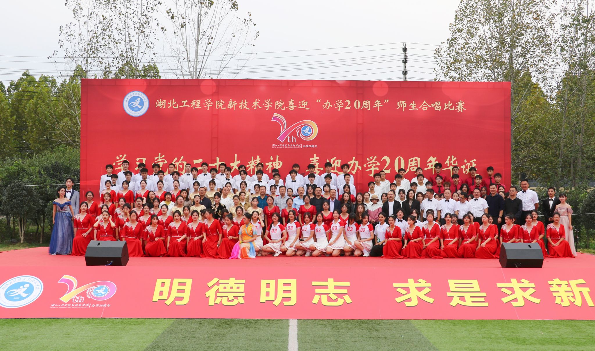 追忆往昔,春华秋实二十年;展望未来,再谱华丽新篇章。我校以一场盛大的合唱比赛庆祝办学二十周年华诞,新院人用高亢的歌声和真挚的情感表达了他们内心的激情与梦想、使命与担当。在此,我们祝愿湖北工程学院新技术学院越来越好!祝愿我们的祖国繁荣昌盛!