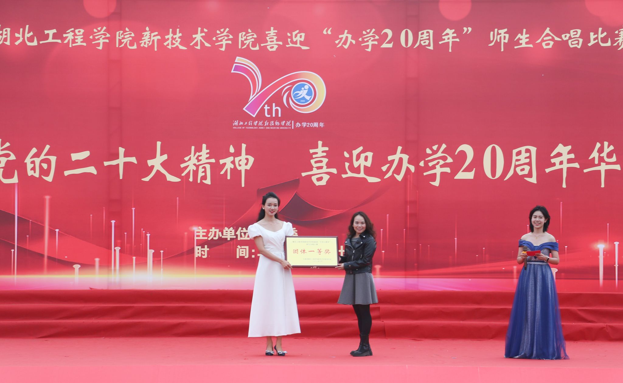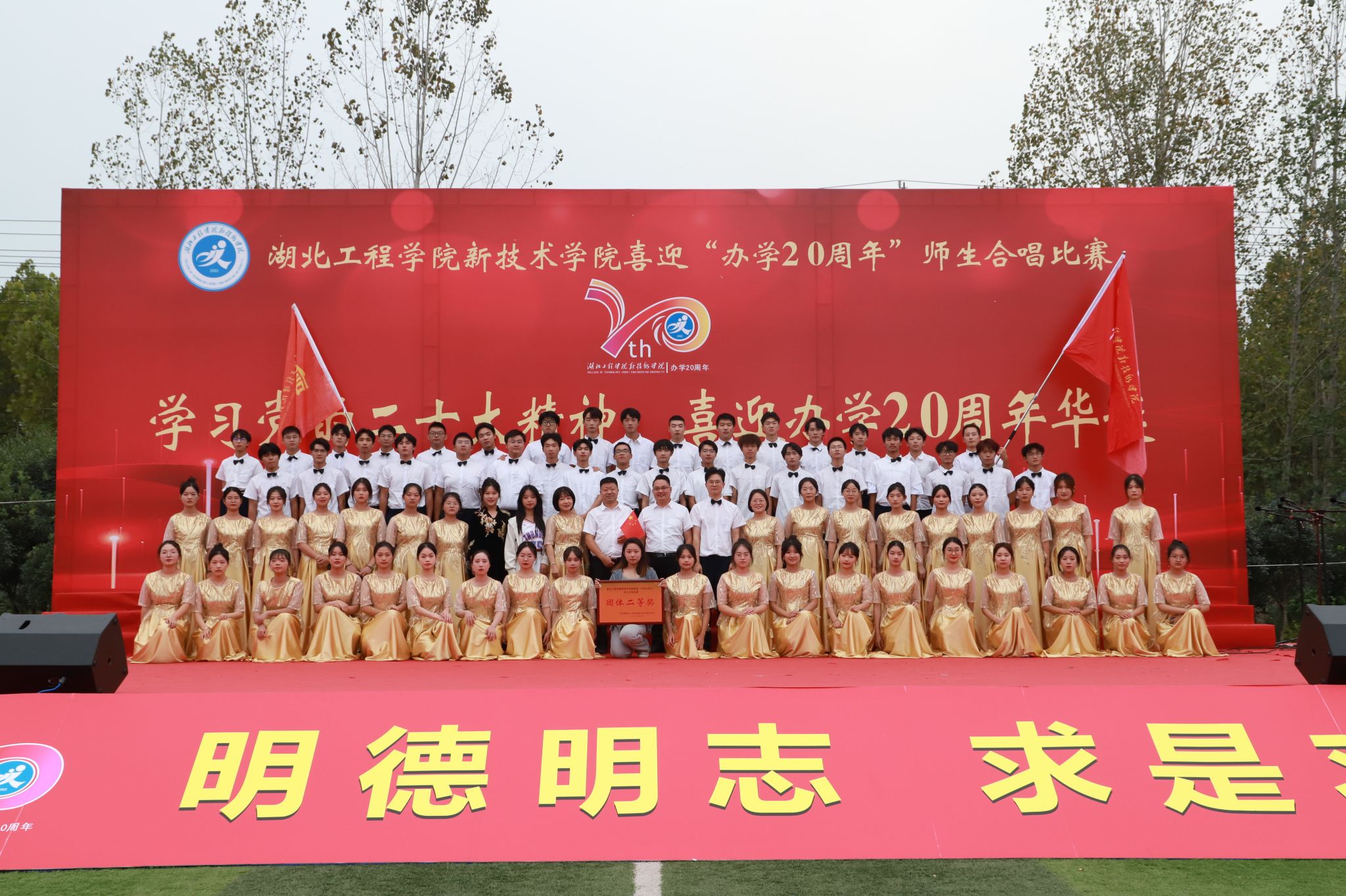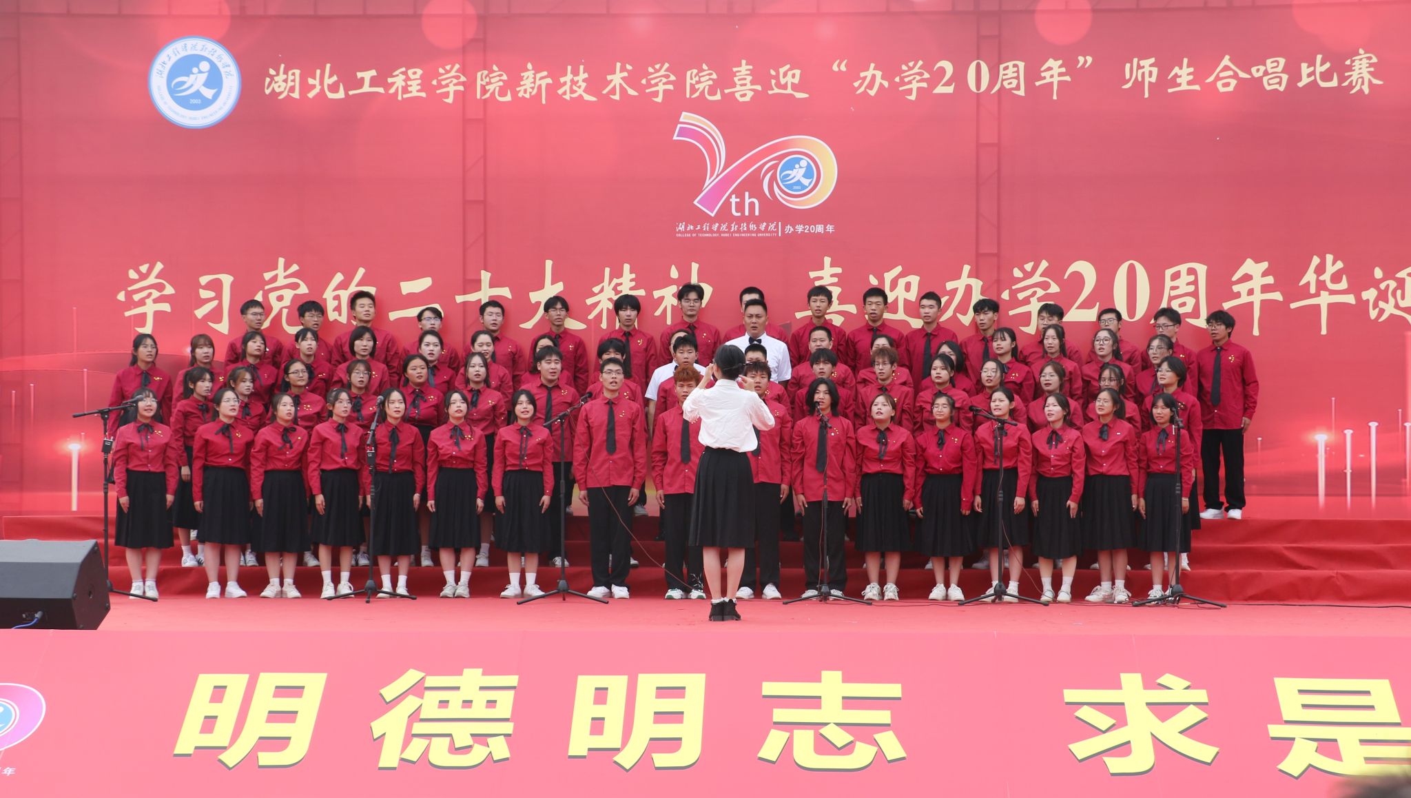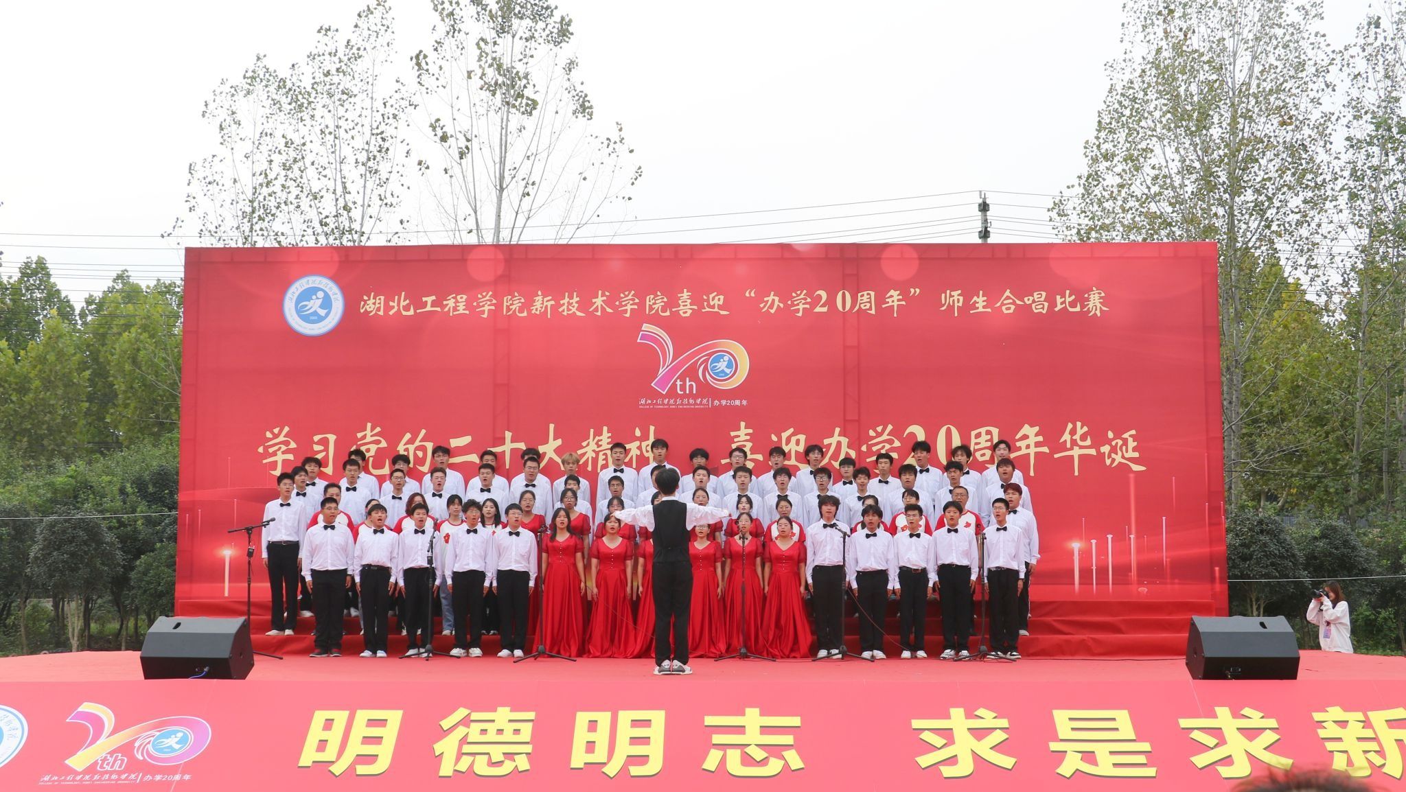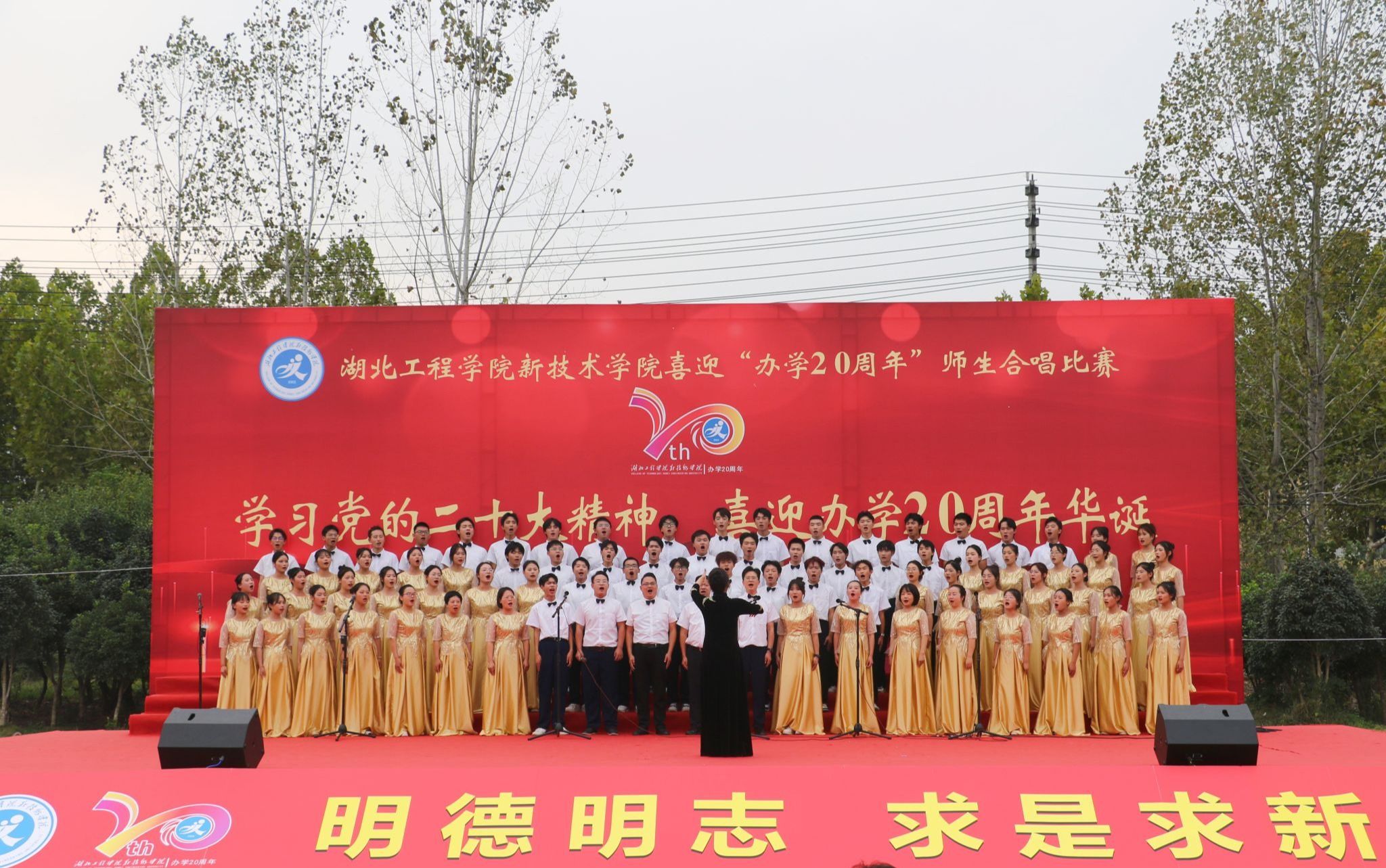 10月26日下午,我校“学习党的二十大精神,喜迎办学20周年华诞”合唱比赛在同大操场举行。院长李明清,党委副书记赵前进,副院长陈友华、蒋成,湖北工程学院纪委派驻纪检员王华,以及各教学系、各职能部门负责人出席活动。